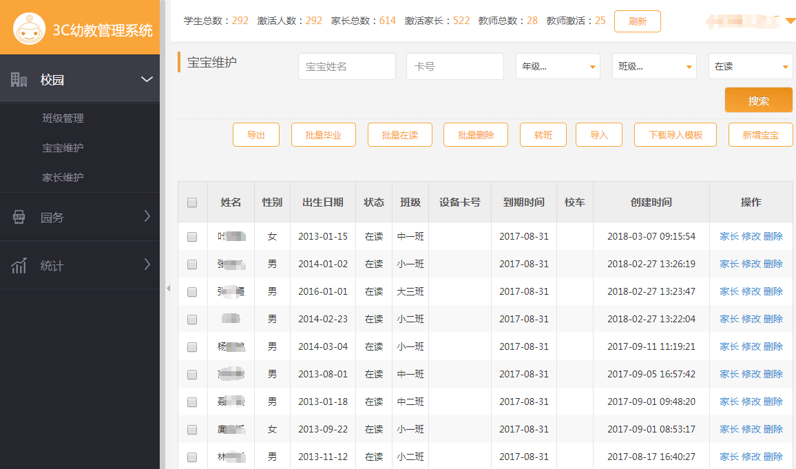 4、出勤/考勤:全市/全區在冊幼兒園兒童出勤狀況,教師考勤狀況,及兒童請假狀況了解;